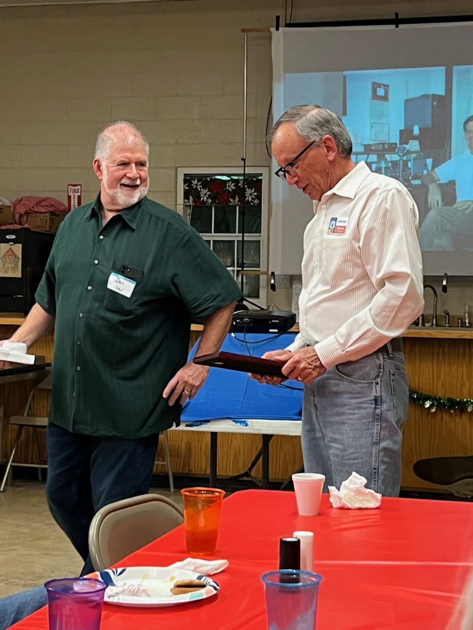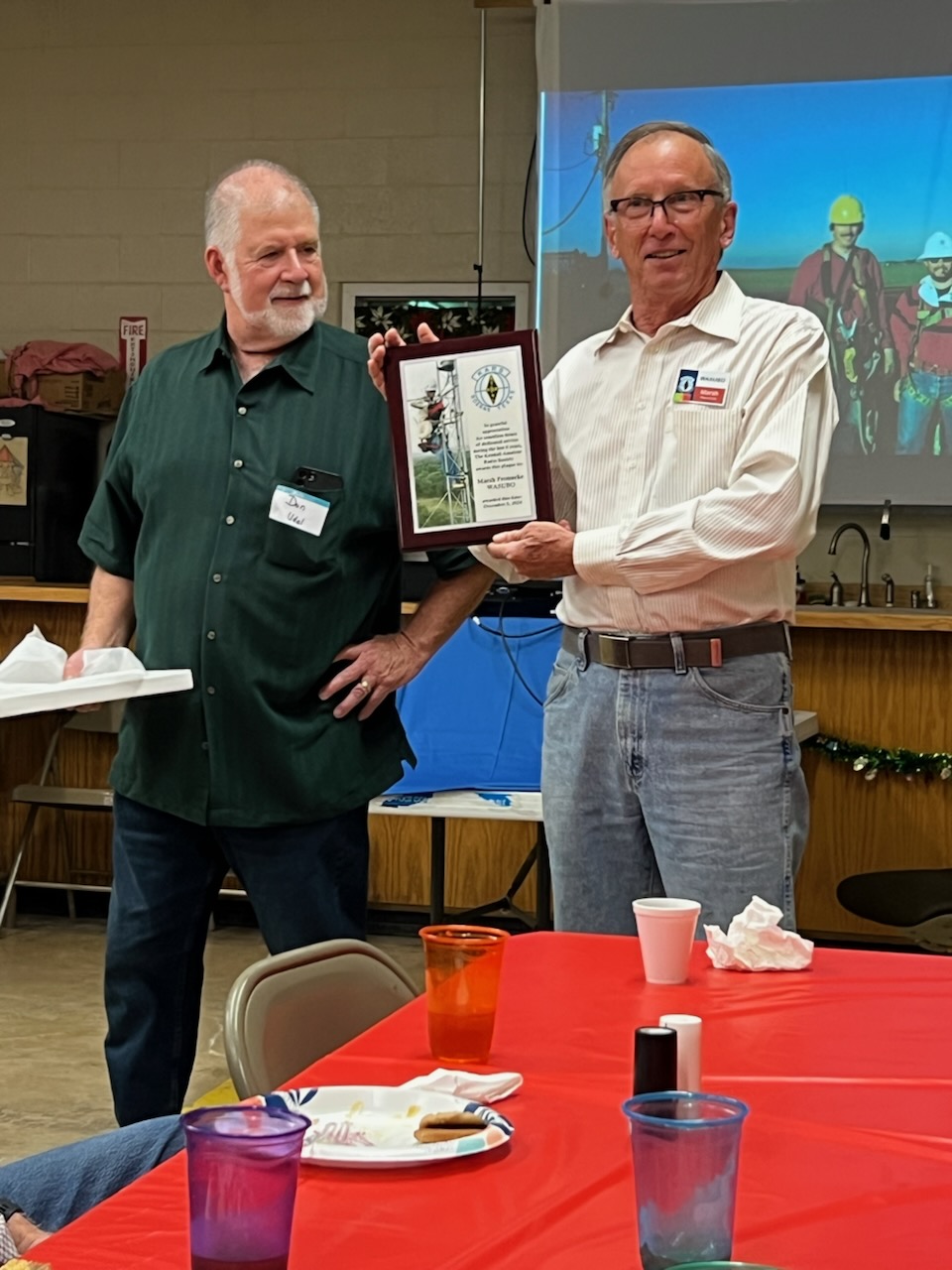 Four $25 gift certificates from DX engineering, provided by the club, were drawn for door prizes. Jim (W6TIR) donated 4 gift certificates as well. Marsh (WA5UBO) was presented with a plaque for all his time & effort this past year keeping the organizations repeaters on the air.